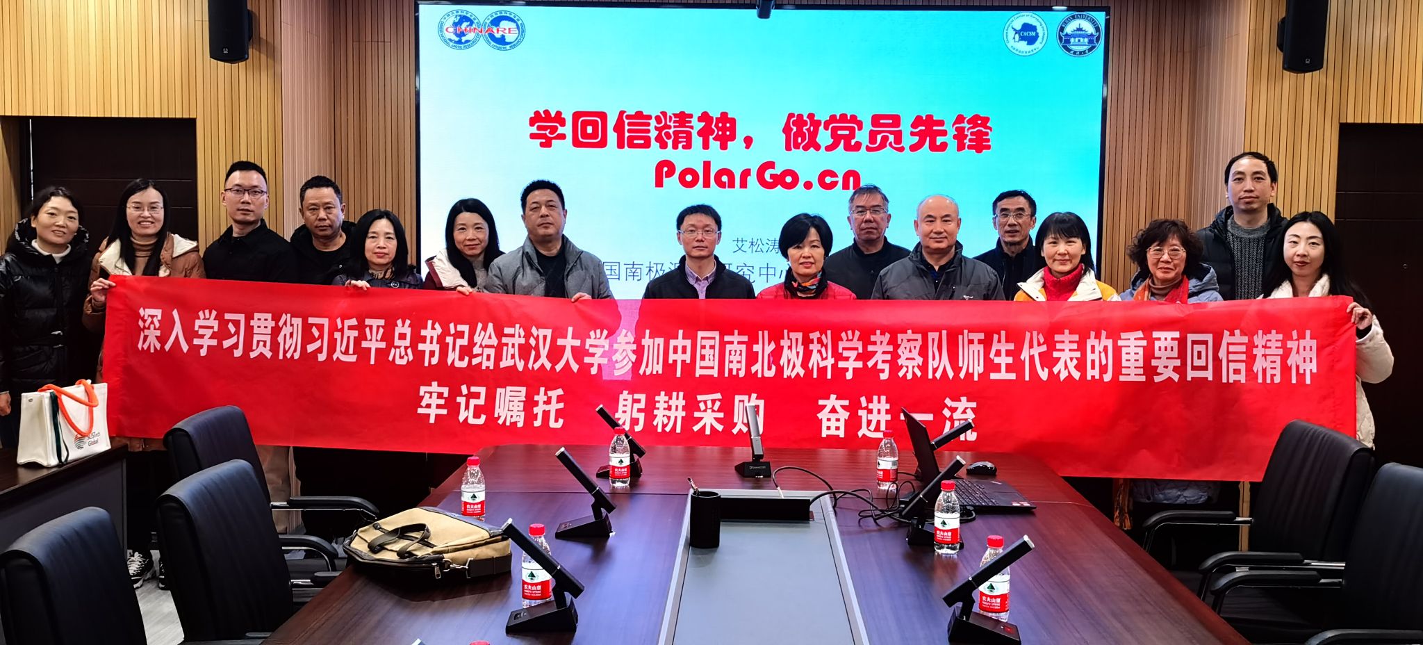 招標中心金晶主任對主題黨日活動做了總結。她首先對南極中心收到習近平總書記的重要回信表示祝賀,對南極中心取得的科研成果表示欽佩。她強調:艾松濤教授不懈奮斗的工作經歷正是武大人始終胸懷“國之大者”,接續砥礪奮斗,練就過硬本領,勇攀科學高峰的生動寫照,招標中心全體人員應以艾松濤教授和南極中心為榜樣,努力躬耕采購,堅持做好本職工作,為服務學校各項事業發展做出更大貢獻。